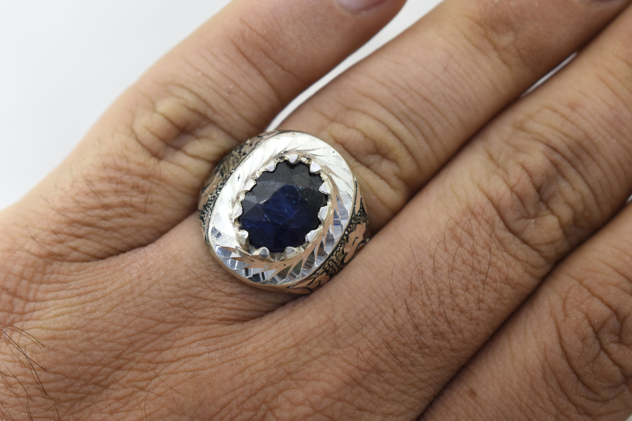 انگشترنقره دستساز مردانه یاقوت کبود آفریقایی