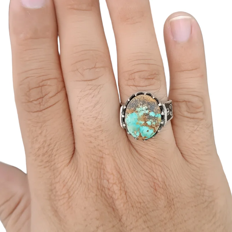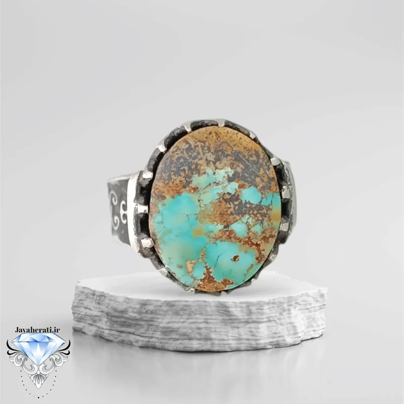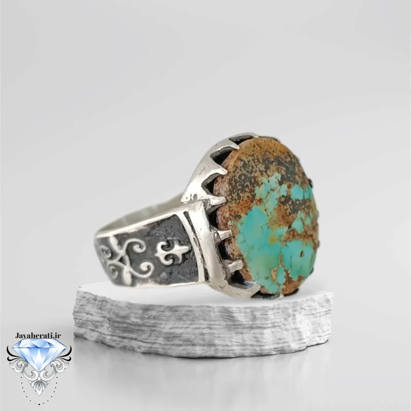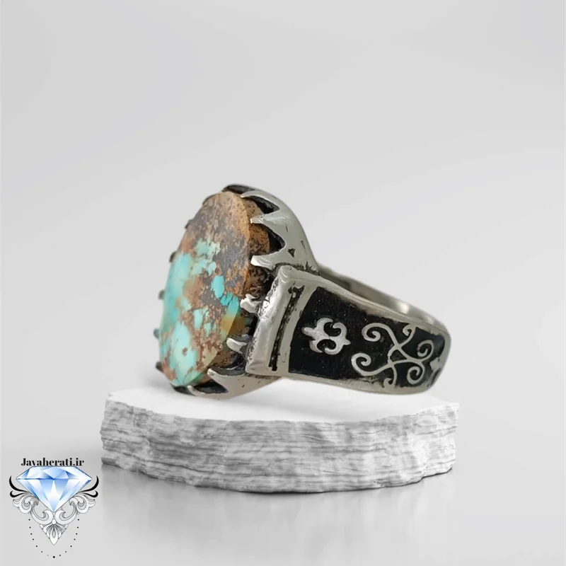 انگشترنقره مردانه فیروزه معدنی نیشابور