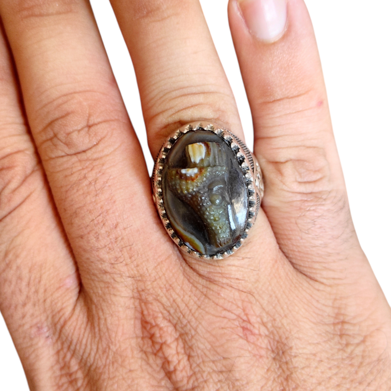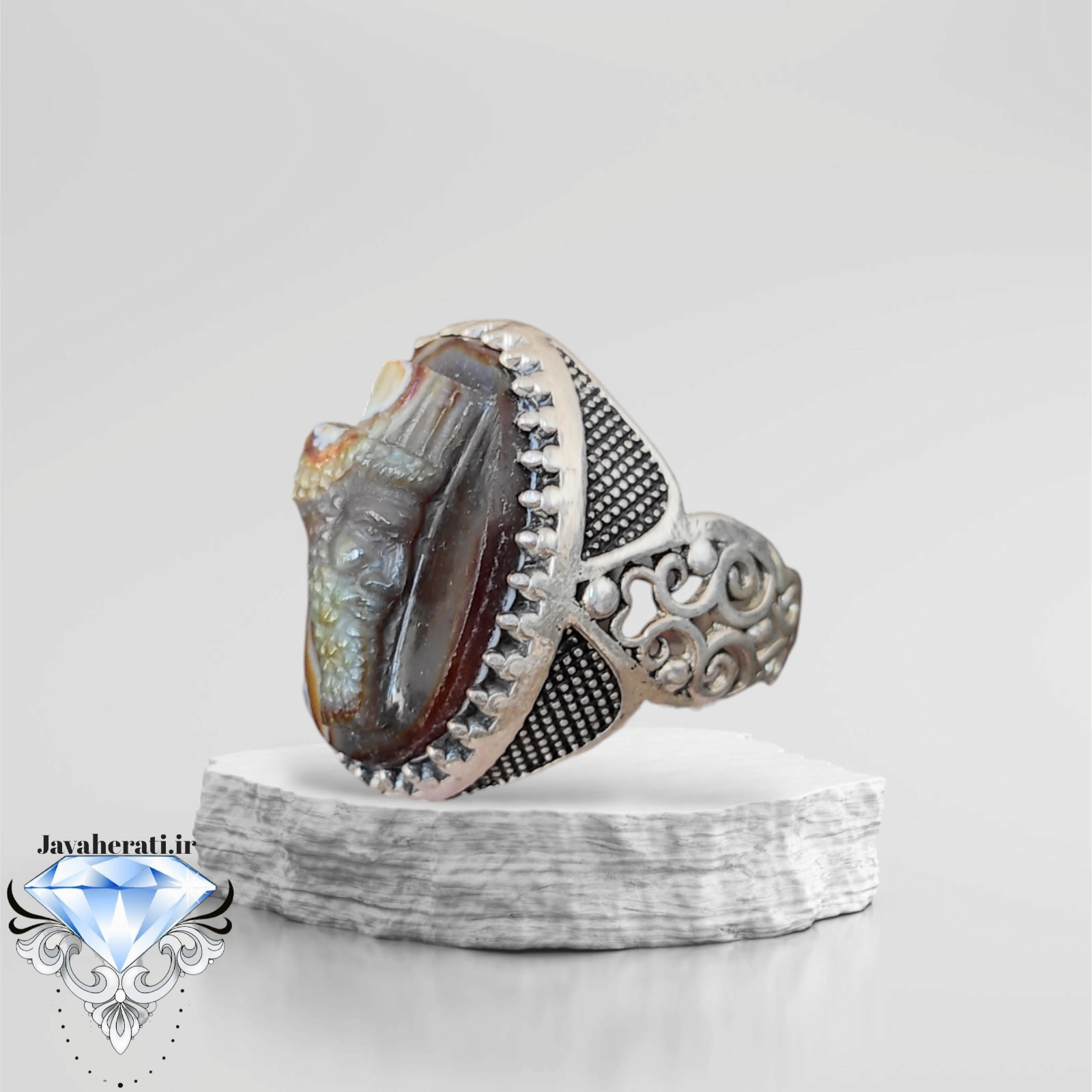 انگشترنقره عقیق کاروینگ کوروش کبیر بینظیر و کلکسیونی