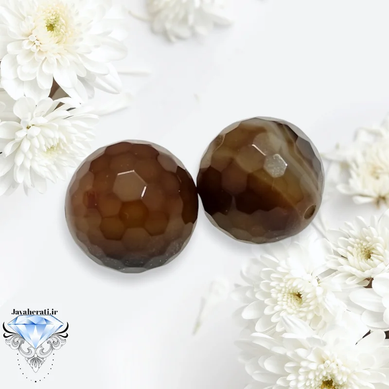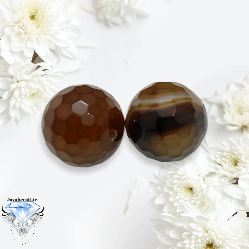 جفت مهره عقیق سلیمانی طبیعی تراش کندویی