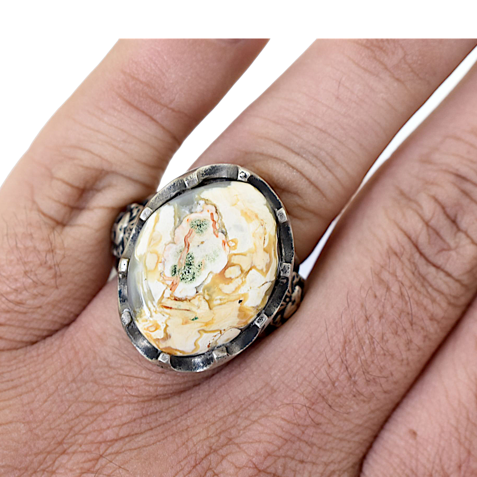انگشتر عقیق سلطانی هندی معدنی بسیارخاص و ارزشمند(بضمانت اصل)-رکاب آلیاژ رنگ ثابت -سایز63 با انگشتر عقیق سلطانی مصور و معدنی، جذابیت و اصالت را به دستان خود بیاورید. این انگشتر با سنگ عقیق طبیعی و طراحی سلطنتی، نمادی از شکوه و هنر اصیل است. با این جواهر خاص، در هر جمعی بدرخشید و خود را متمایز کنید. فرصت را از دست ندهید و همین حالا این شاهکار پرانرژی را به کلکسیون خود اضافه کنید!
