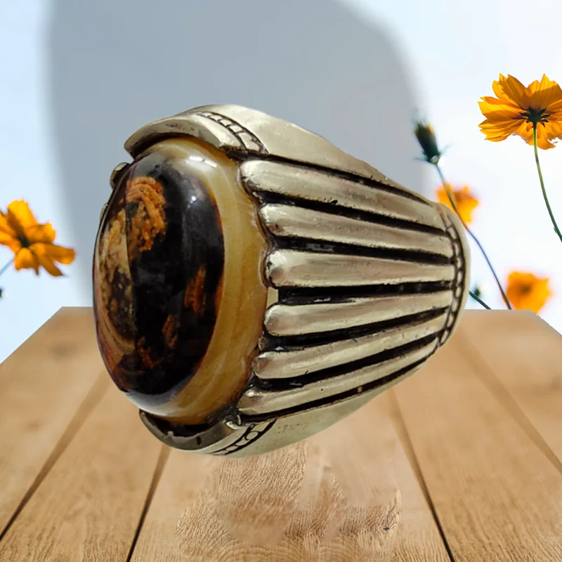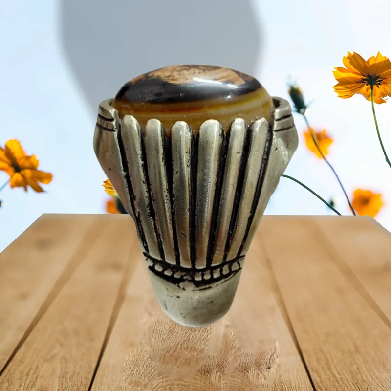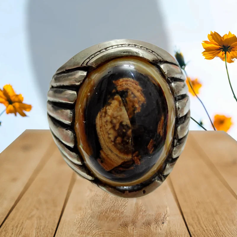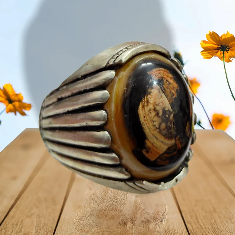 انگشتر سلیمانی سه پوست مصور آدمک طبیعی بسیارزیباوارزشمند (بضمانت اصل)-رکاب زیبا وهنری -سایز63