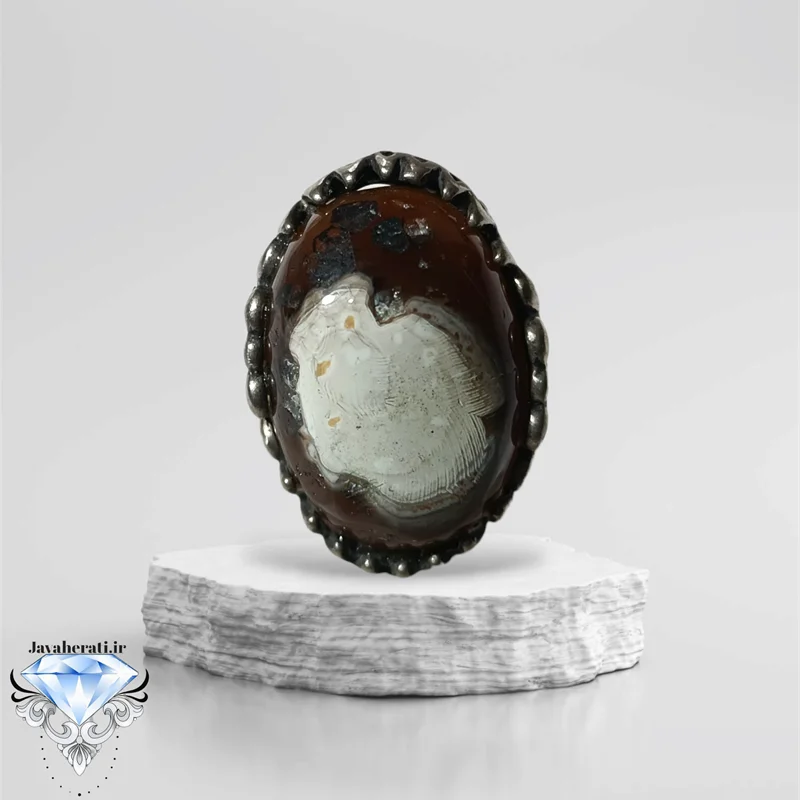 انگشتر عقیق جزع سلطانی مصور اصیل وکلکسیونی (بضمانت اصل)-رکاب زیباوهنری -سایز63