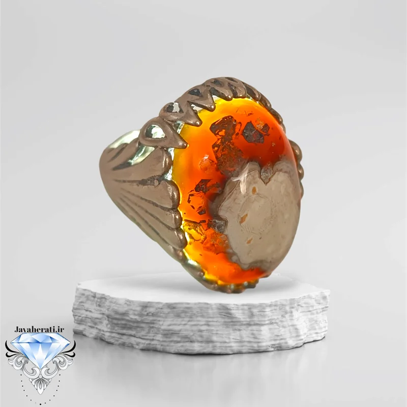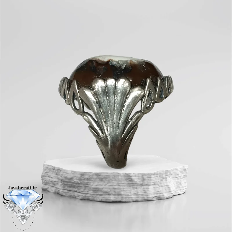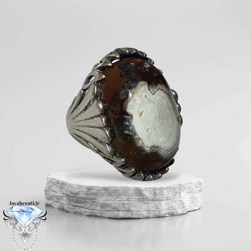 انگشتر عقیق جزع سلطانی مصور طبیعی بسیار زیباوکلکسیونی با رکاب جوندار وزیبا مشابه نقره