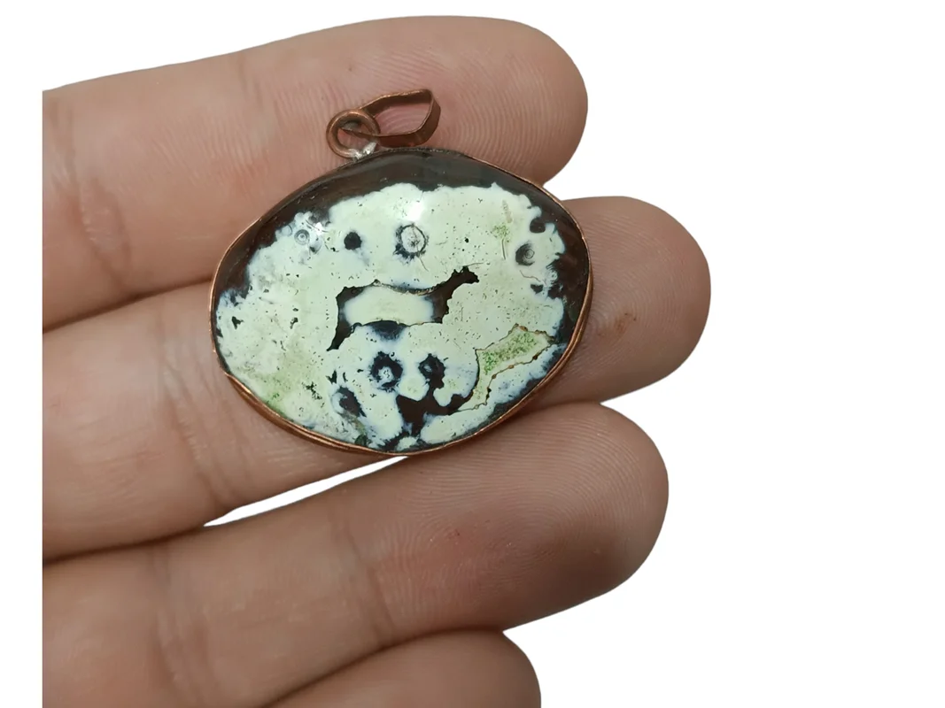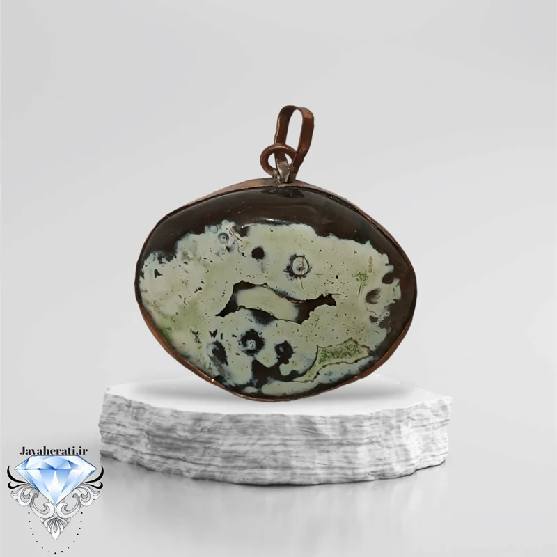 آویزعقیق سلیمانی مصور فوق العاده زیبا وخاص پرانرژی با قاب مس که میتوانید بصورت گردنبند استفاده کنید.