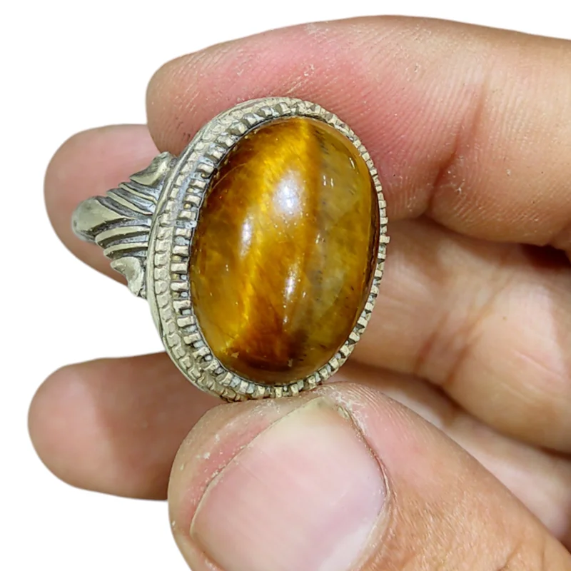 انگشتر چشم ببر معدنی با تلالو بسیار زیبا (بضمانت اصل)-رکاب زیبا و جوندار -سایز64